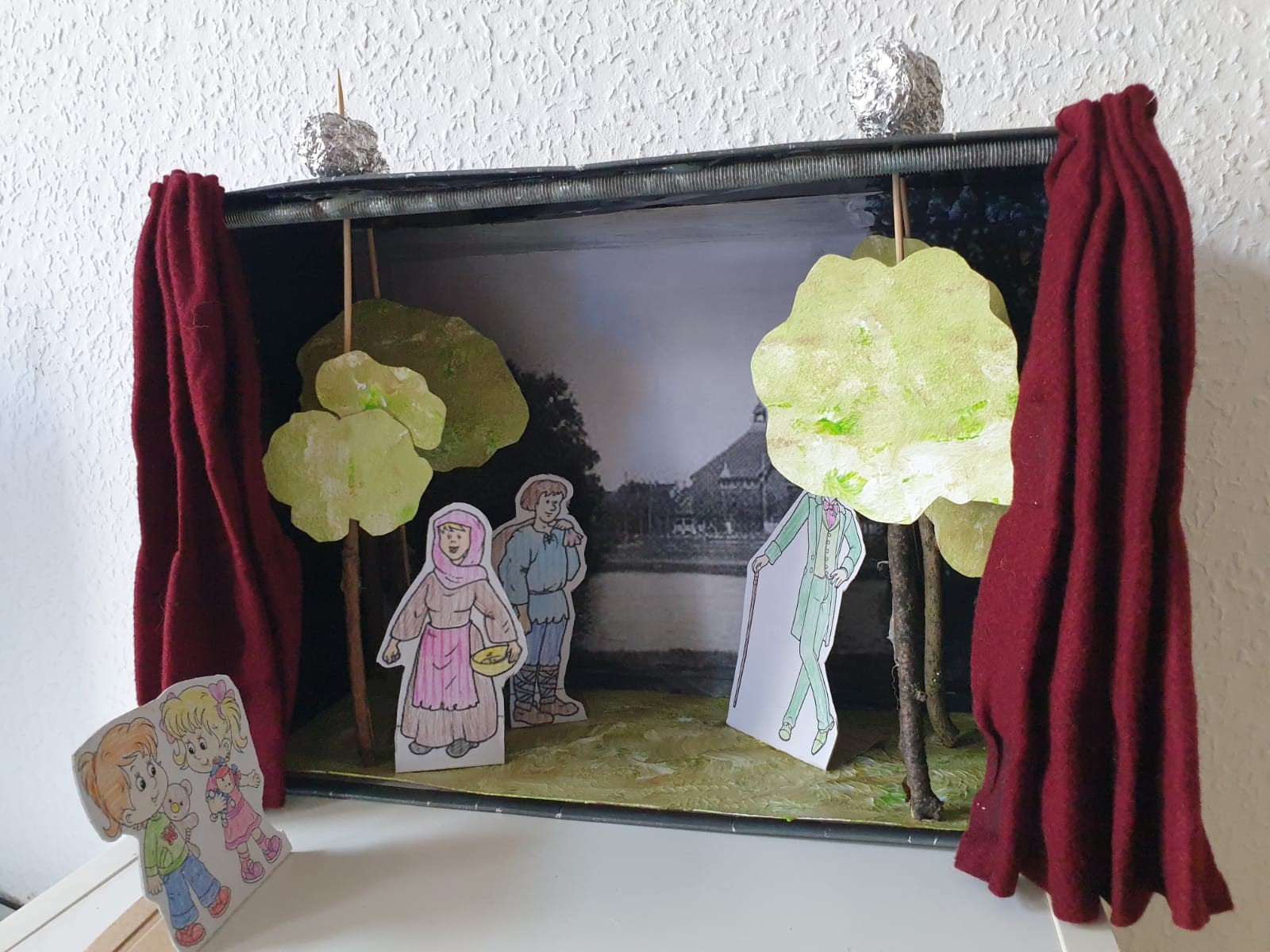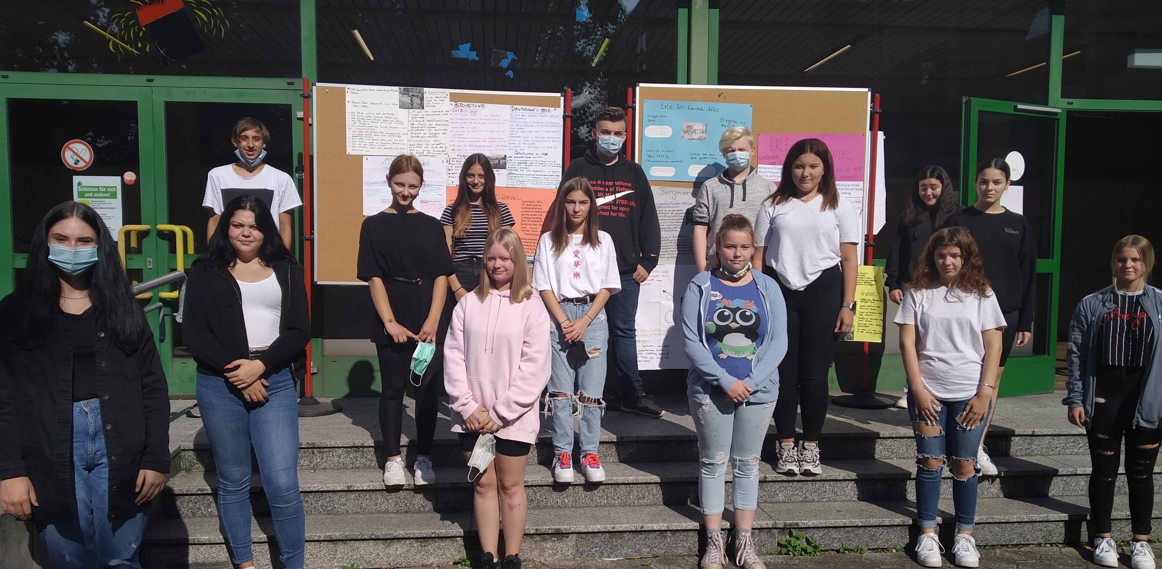 Der Kurs „Darstellen und Gestalten“ des 10. Jahrgangs der Gesamtschule Erle unter Leitung der Lehrerin Stefanie Beckmann hat auf der Grundlage historischer Bilder aus den Jahren 1723 bis 1960 ein Theaterstück unter dem Namen „Erle im Wandel“, welches die wechselhafte Geschichte des Gelsenkirchener Stadtteils verdeutlicht, geschrieben. Dabei entstand ein Theaterstück, das die beiden Figuren Paula und Merle zeigt, die historische Dokumente, Bilder und eine Schallplatte auf dem Dachboden ihrer neuen Wohnung in Erle finden und dadurch beginnen, sich mit den Geschichten und Anekdoten ihres neuen Stadtteils auseinandersetzen, woraufhin sie sich selbst auf eine Reise in die Vergangenheit begeben. Dabei lebt das Theaterstück neben seiner historischen Aufarbeitung der Vergangenheit vor allem auch von seinem sprachlichen Witz, da die Sprache der Figuren jeweils in ihre entsprechende Zeit hineinversetzt ist. „Insbesondere die Abbildungen realer Personen in unterschiedlichen Lebensperspektiven dienten für uns als Inspiration für die Charaktere unseres Theaterstücks“, sind sich die Schülerinnen und Schüler des Kurses einig. Da sie aufgrund der Corona-Pandemie ihr Stück nicht selbst aufführen können, haben sie es in der vergangenen Woche ihrem Nachfolgekurs übergeben und hoffen, dass es dieser im kommenden Jahr auf der Bühne zeigen kann.