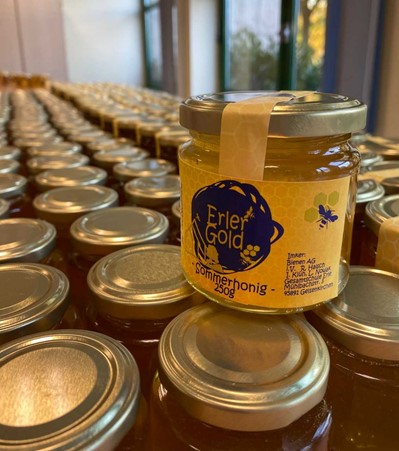 Nachdem die Förderung des „Schwarzen Goldes“ (Steinkohle) zu Beginn der 2000er Jahre in Gelsenkirchen eingestellt wurde, hat es sich die „Bienen AG“ der Gesamtschule Erle im Januar 2020 zum Ziel gesetzt, zukünftig „Erler Gold“ zu produzieren. Die Idee, Bienen an die Schule zu holen, stammt von den Schülerinnen und Schülern selbst und wurde von der Lehrerschaft wohlwollend aufgenommen und in ihrer Umsetzung begleitet. So werden aktuell zwei Bienenvölker im Innenhof der Schule, von vier freiwilligen Schülerinnen und Schülern der Jahrgänge 9 und 10 sowie den Lehrerinnen Lydia Nowak, Isabel Klüh und Ramona Halsch betreut und gepflegt. In diesem Jahr wurden nun auch die ersten 160 Gläser „Erler Gold“, also Honig aus regionalem und nachhaltigem Anbau, produziert und von den Schülerinnen und Schülern abgefüllt. Diese Gläser fanden zum Verkaufsstart im Rahmen des „Tages der offenen Tür“ im Umfeld der Schule so einen guten Anklang, dass sie bereits danach restlos ausverkauft waren.