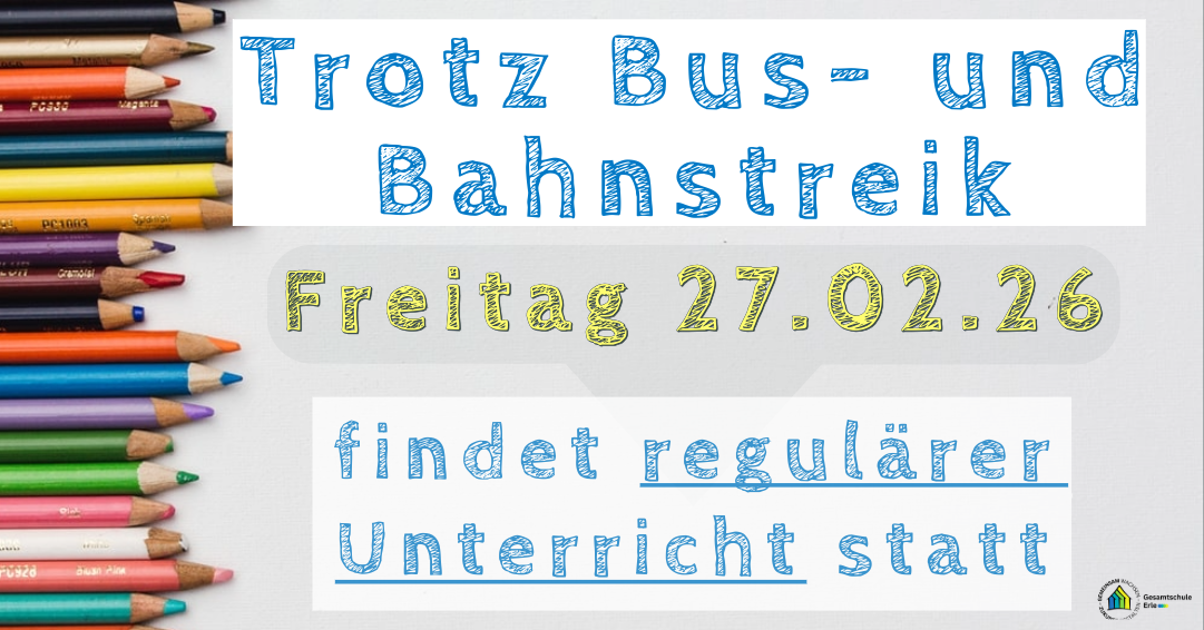 am Freitag, 27.02.2026 (und Samstag, 28.02.) streiken die Bediensteten der öffentlichen Verkehrsbetriebe (die Busse und Bahnen im Stadtgebiet werden nicht fahren).