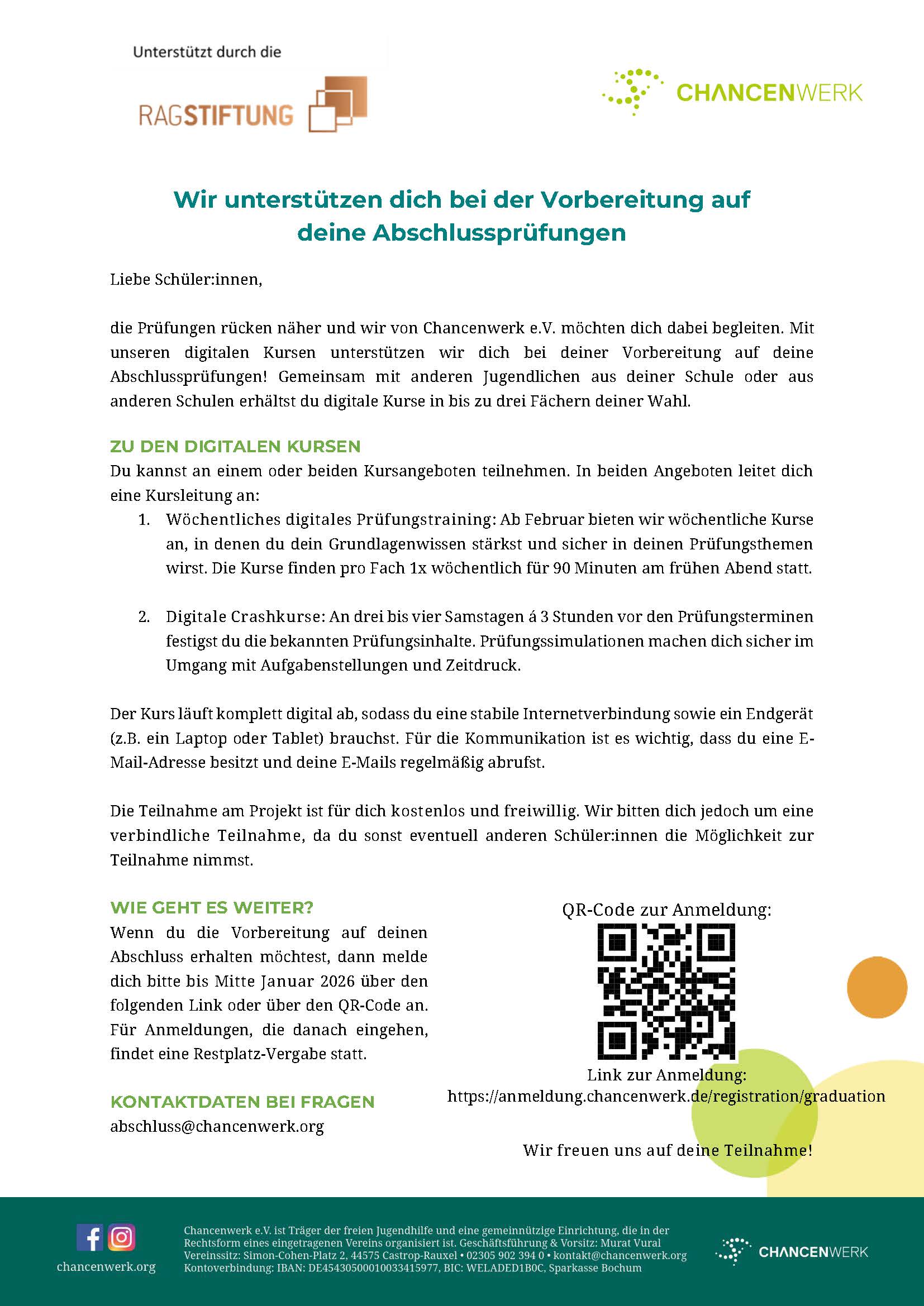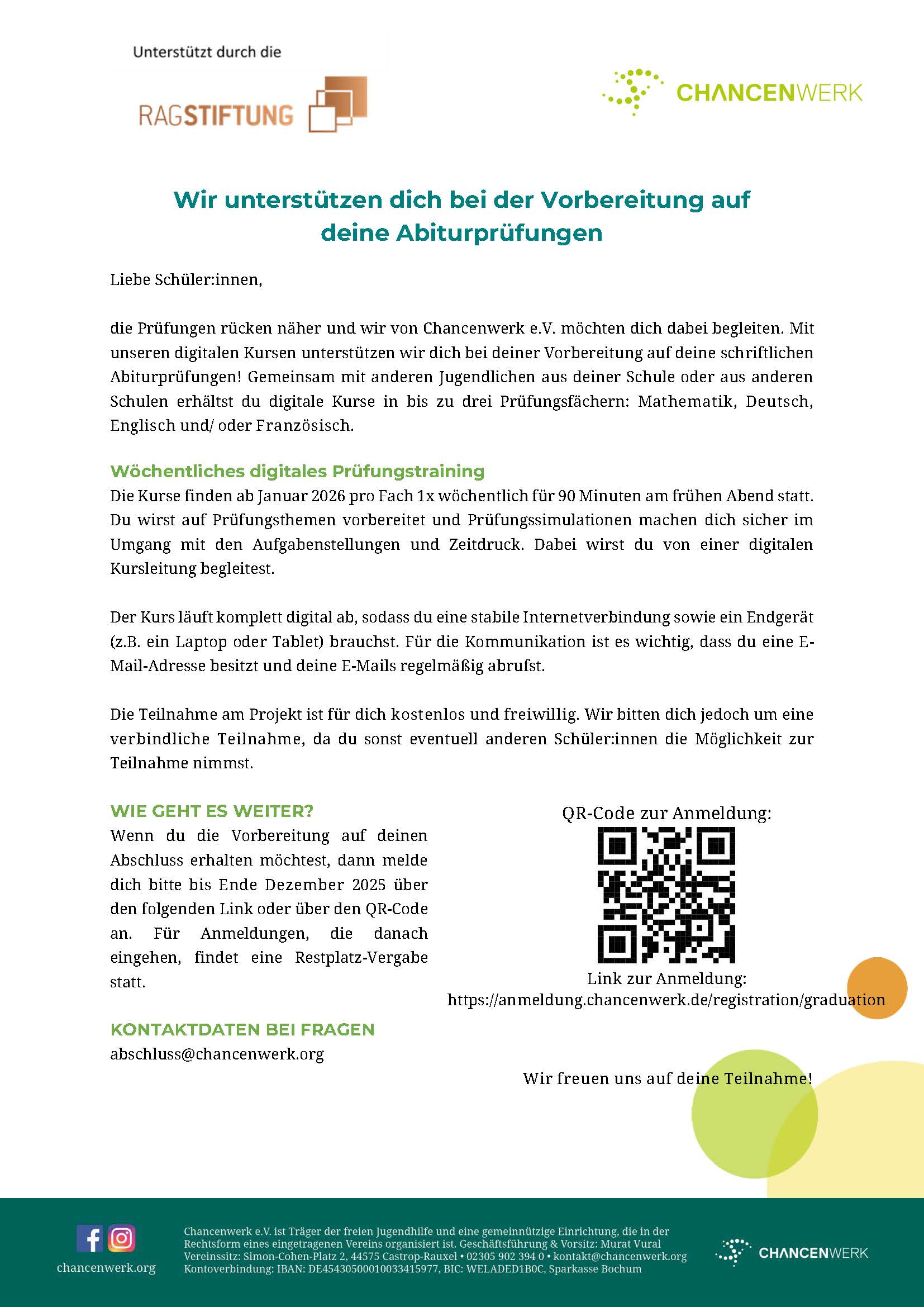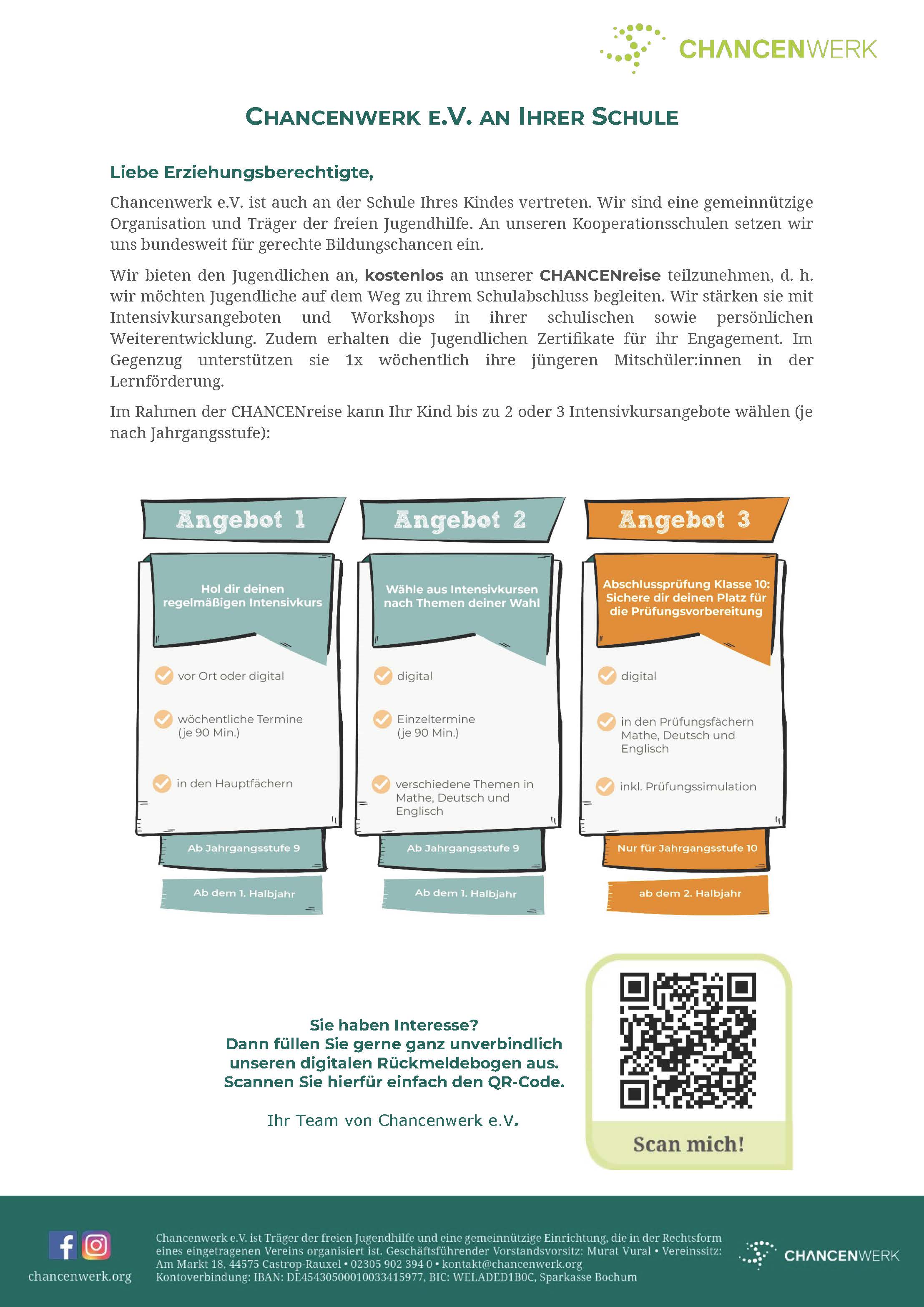 passend zu den Zeugnissen, möchten wir euch auf unser Angebot von Chancenwerk aufmerksam machen!