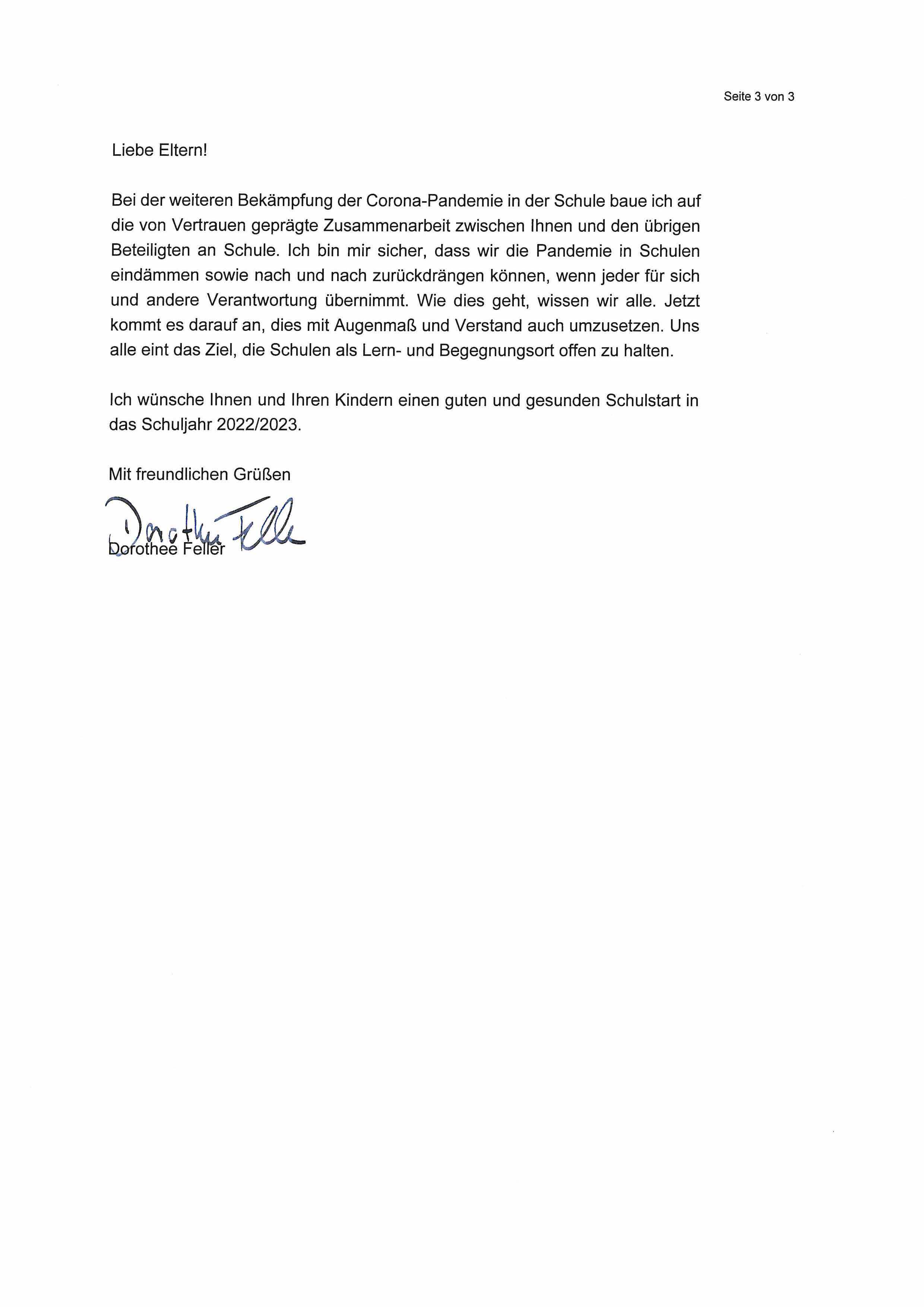 1) Brief der Ministerin an die Eltern_Erziehungsberechtigten aller SuS zu Corona-Maßnahmen ab 10.08.2022